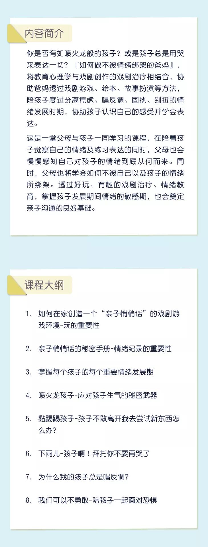 学会控制情绪是父母的必修课,更需要不断的练习。Otto2小象听听特邀英国国家注册戏剧治疗师黄暐筑,帮助爸爸妈妈了解孩子成长中的小情绪。在让父母了解孩子情绪的同时,也知道自己的坏情绪从何而来,知道如何『做不被情绪绑架的爸妈』!